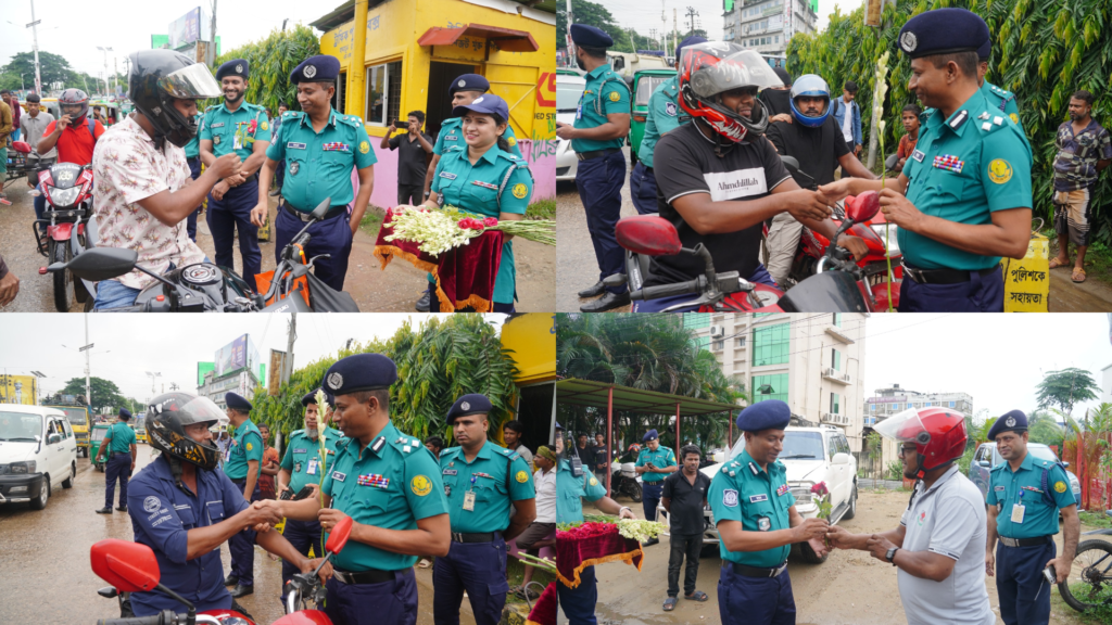 পুলিশ কমিশনারের নির্দেশনায় এসএমপি’র বিভিন্ন পর্যায়ের কর্মকর্তারাও সিলেট মহানগরীর বিভিন্ন পয়েন্টে হেলমেট পরা বাইকারদের ফুল দিয়ে শুভেচ্ছা জানান।