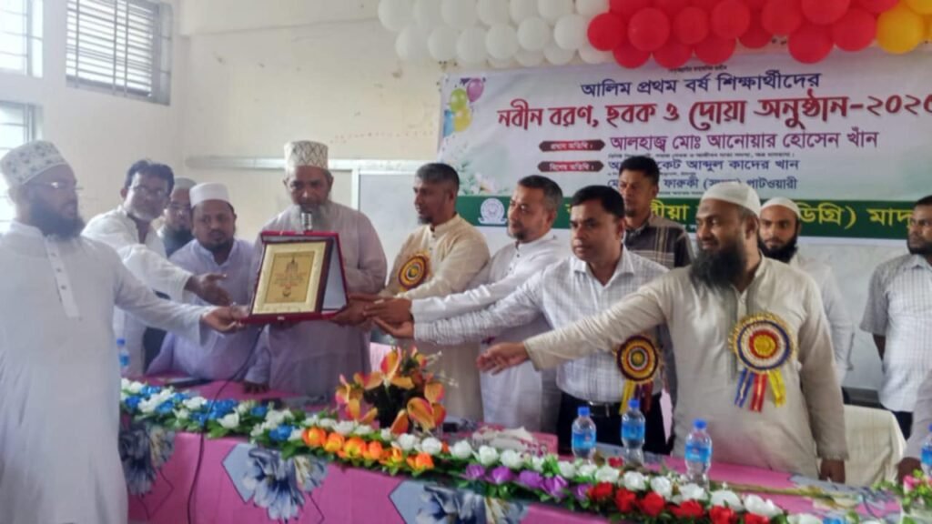 অনুষ্ঠানে আলিম প্রথম বর্ষের শিক্ষার্থীদেরকে ফুল দিয়ে প্রতিষ্ঠানের পক্ষ থেকে বরণ করে নেওয়া হয়।